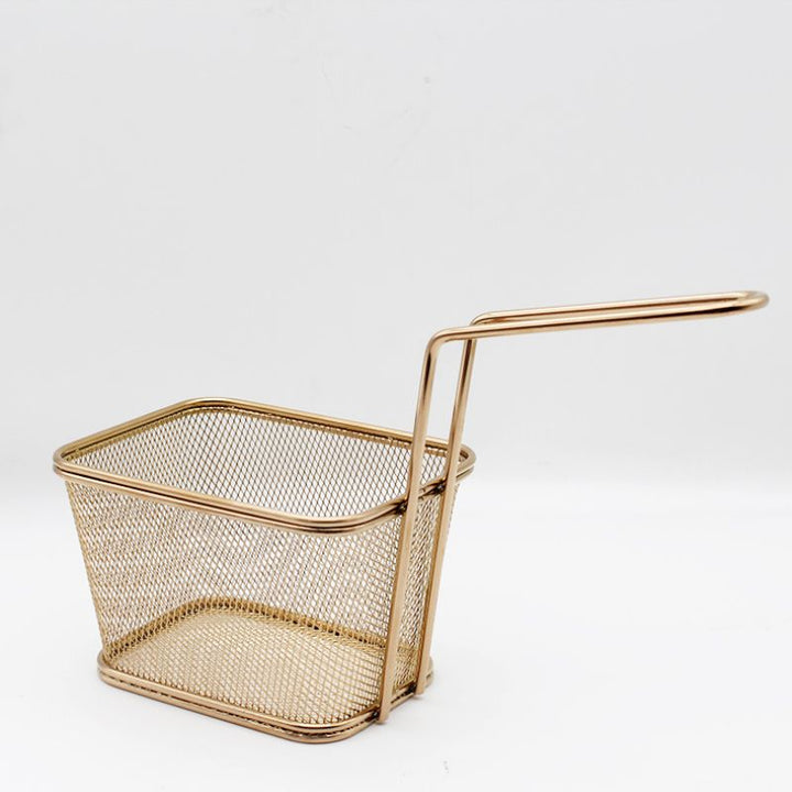 ✨ Añade un toque moderno y sofisticado a tu cocina o mesa con este elegante cesto metálico dorado. Su diseño tipo es perfecto para servir papas fritas, snacks o acompañamientos con estilo.