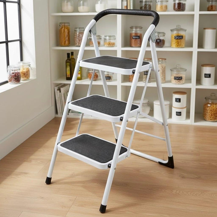 ¡Alcanza más alto con seguridad y estilo! ⬆️Nuestra escalera plegable de 3 niveles es tu aliada ideal.