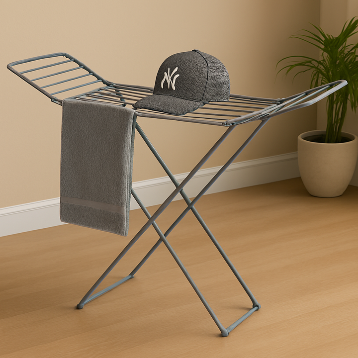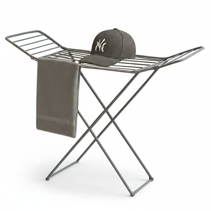 Estante tendedero plegable es ideal para secar tu ropa de forma práctica y eficiente en espacios interiores o exteriores. Su diseño en “X” ofrece estabilidad, mientras que sus alas laterales y barra central brindan amplio espacio para colgar prendas de diferentes tamaños.