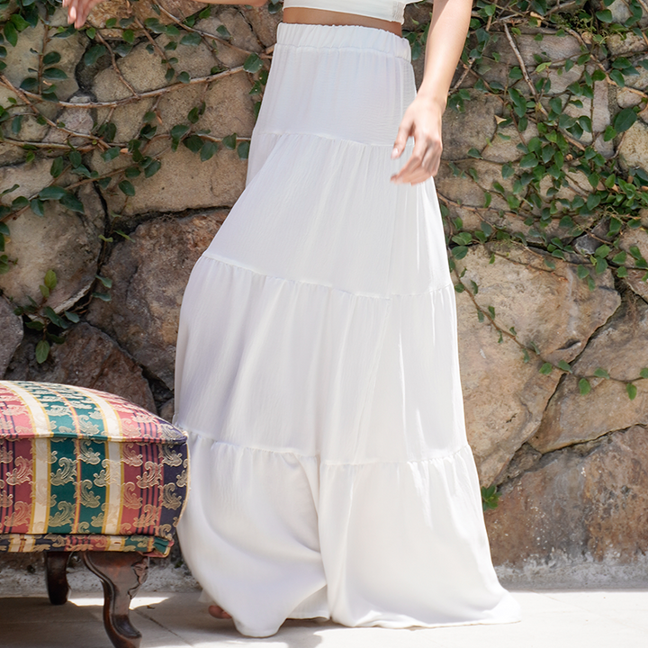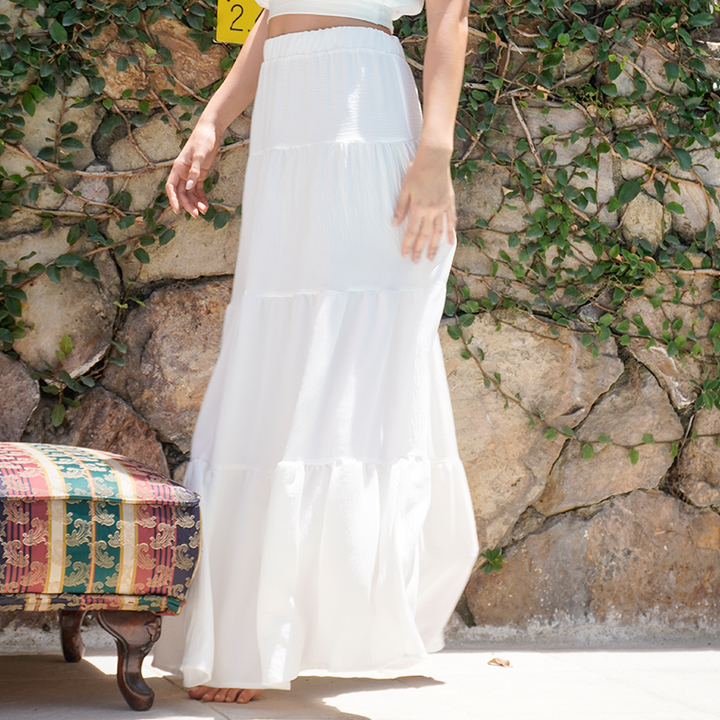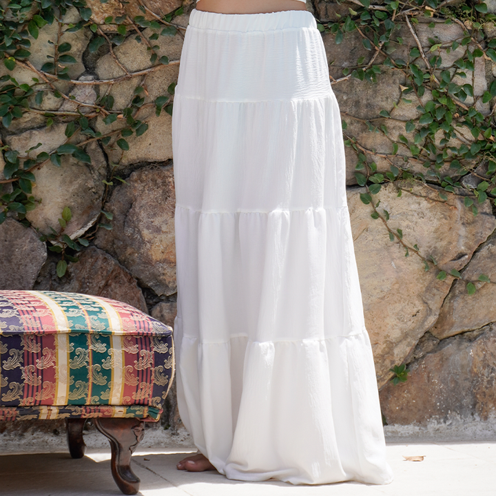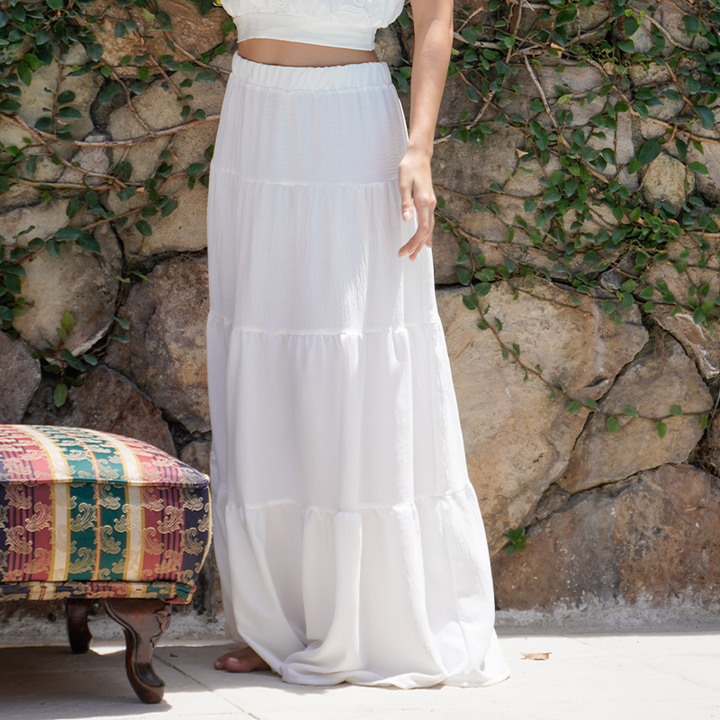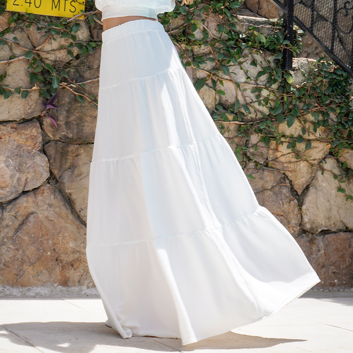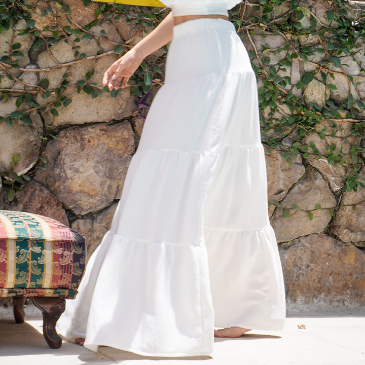 Falda larga con pretina resortada y cortes