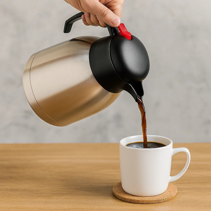 ¡Disfruta de tus bebidas siempre a la temperatura ideal! 🍵☕ Este termo de 1.2 litros es perfecto para tenerlo en tu cocina.