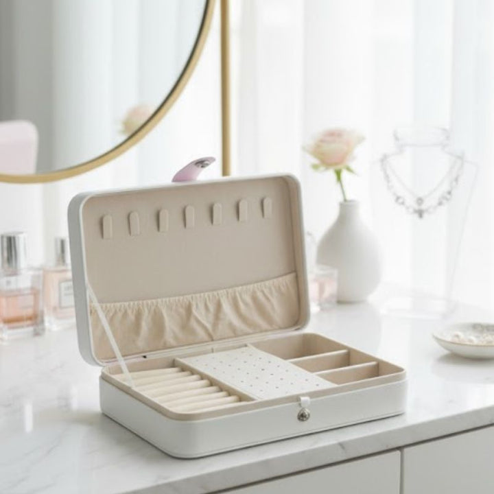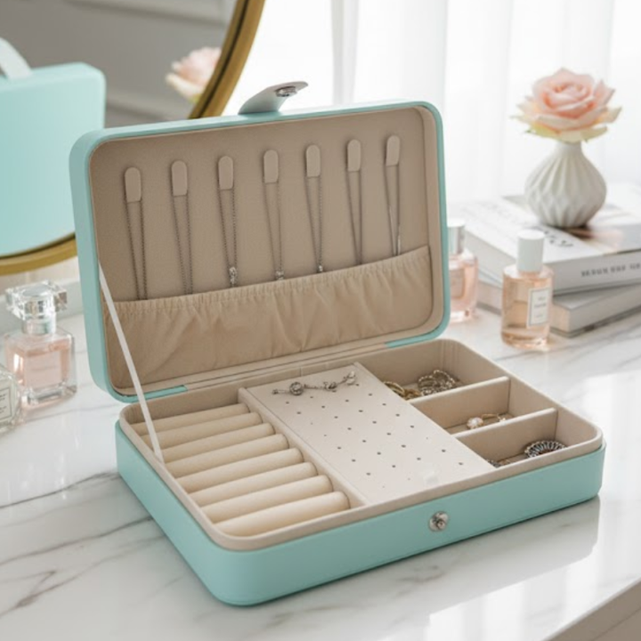 💍 Guarda tus joyas con estilo y sofisticación. Su interior protege tus accesorios y mantiene todo perfectamente organizado.