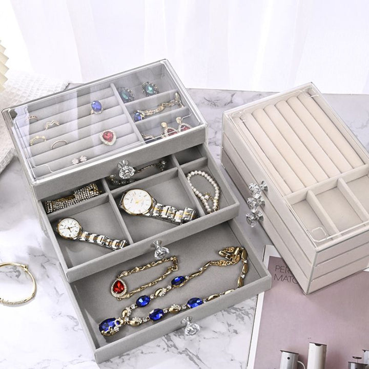 💎 Mantén tus joyas perfectamente organizadas con este elegante. Su diseño moderno con tiradores tipo cristal le da un toque sofisticado y decorativo.