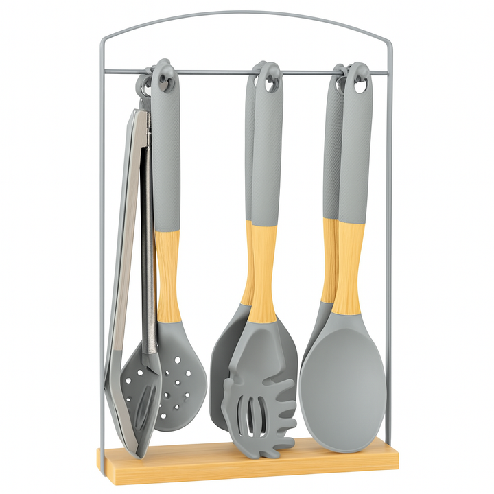 ¡Haz de tu cocina un espacio más práctico y elegante! 🍳✨Este Juego de Cocina 7 pcs está diseñado para brindarte funcionalidad y estilo en cada preparación. Sus utensilios de silicona y mangos ergonómicos combinan resistencia, comodidad y un diseño moderno que se adapta a cualquier cocina.