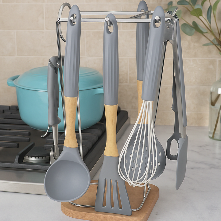 ¡Haz de tu cocina un espacio más práctico y elegante! 🍳✨Este Juego de Cocina 7 pcs está diseñado para brindarte funcionalidad y estilo en cada preparación. Sus utensilios de silicona y mangos ergonómicos combinan resistencia, comodidad y un diseño moderno que se adapta a cualquier cocina.
