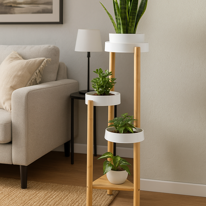 ¡Organiza y decora tus espacios con estilo gracias a esta repisa 4 niveles! 🌿✨
