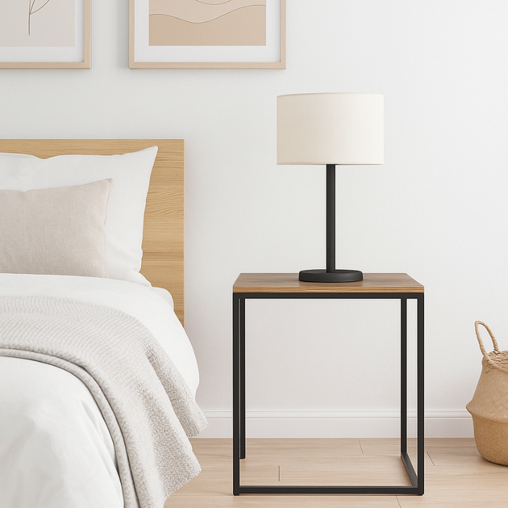 ✨ ¡Diseño moderno y versátil! Esta mesa auxiliar combina una estructura metálica negra con superficie efecto madera, ideal para decorar tu sala, habitación o estudio con un estilo elegante y funcional.