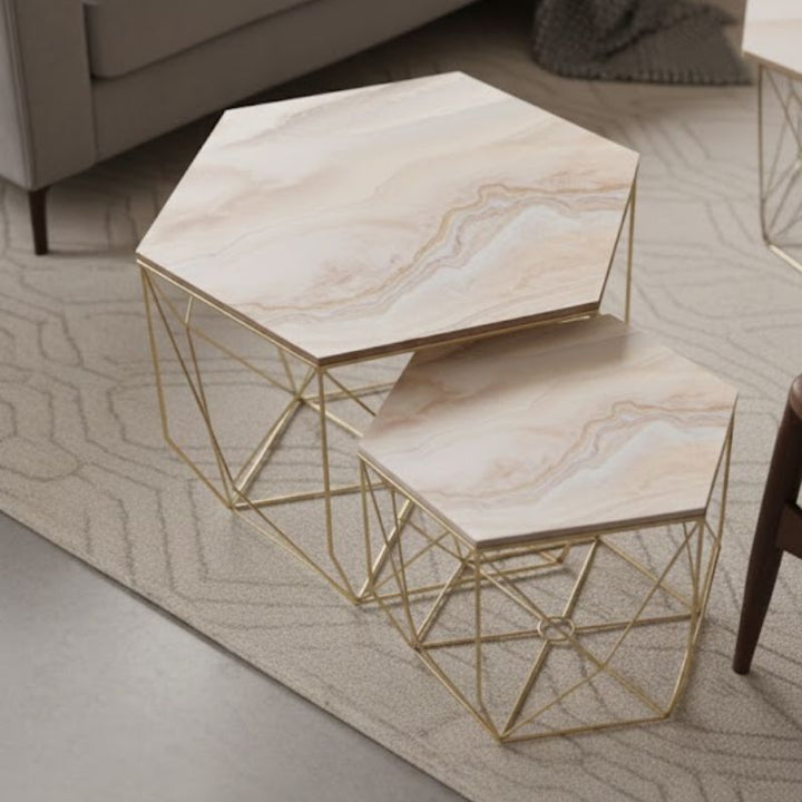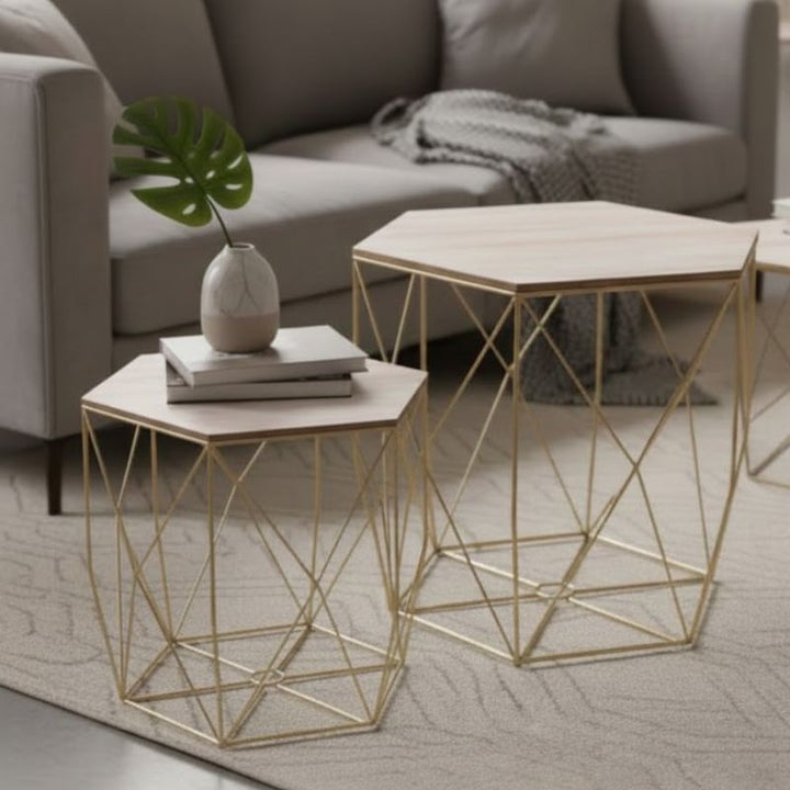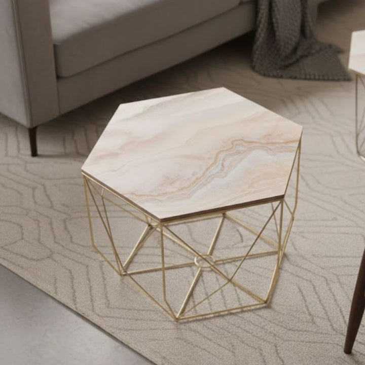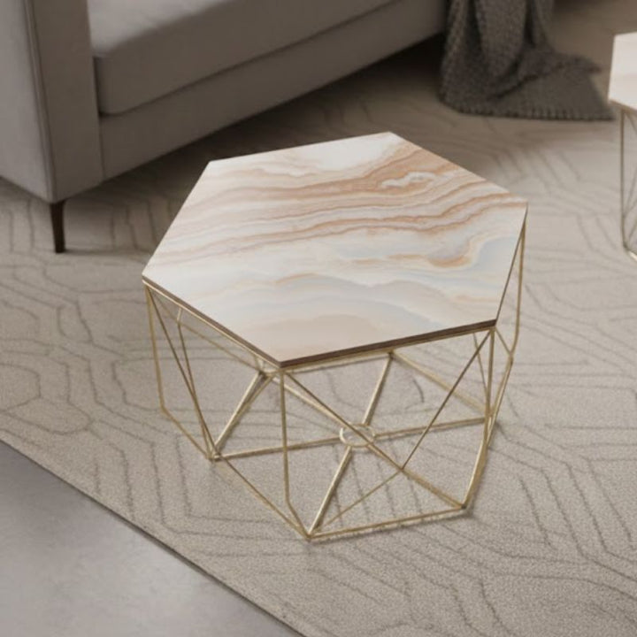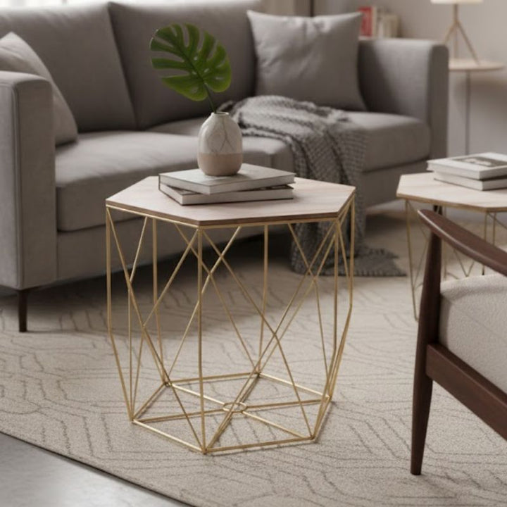 Dale un toque moderno y elegante a tu sala con esta mesa decorativa hexagonal.