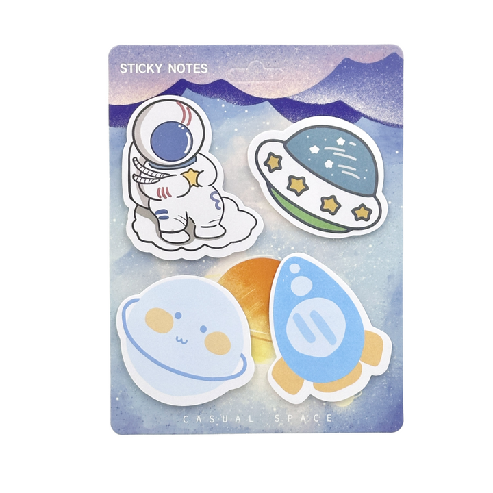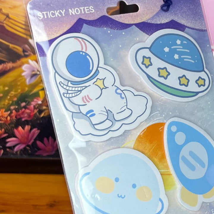 ✨ Agrega un toque divertido y fuera de este mundo a tus apuntes, agenda, libros o escritorio con estas notas adhesivas con diseño de astronauta, cohete, planeta y nave espacial. ¡Perfectas para estudiar, trabajar o regalar! 🚀💫