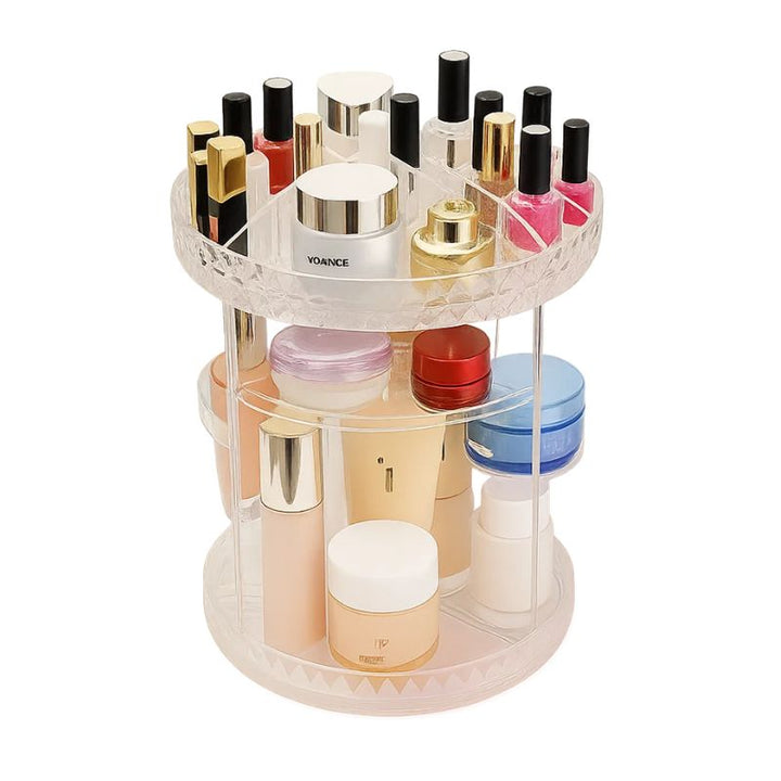 ¡Mantén todo tu maquillaje y cosméticos en orden con estilo y practicidad! 💄✨ Este organizador giratorio de 360° es perfecto para tener a la mano tus labiales, perfumes, brochas y cremas, aprovechando cada espacio al máximo.