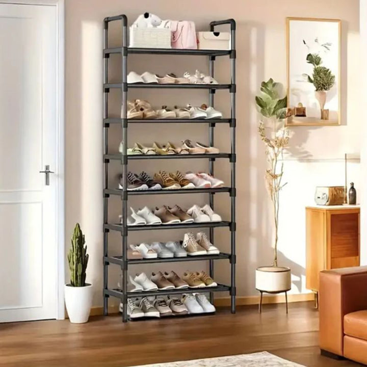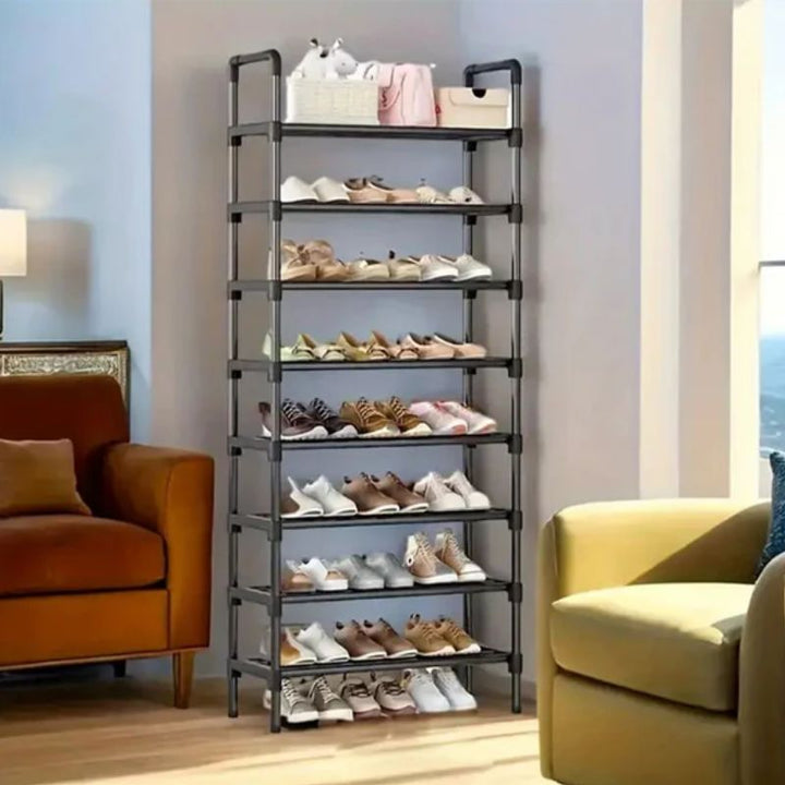 Este organizador de zapatos de 8 niveles tiene estructura metálica resistente y conectores de plástico ABS de alta calidad para una mayor estabilidad y durabilidad.