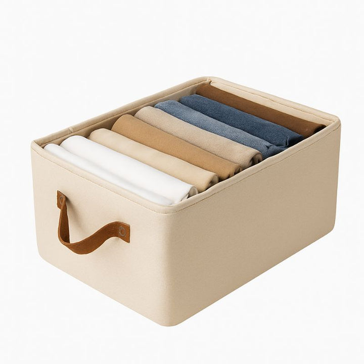 ✨ Dale a tus espacios un toque elegante y ordenado con esta práctica caja organizadora. Su diseño minimalista y asa lateral en tono cuero la hacen perfecta para cualquier ambiente del hogar.