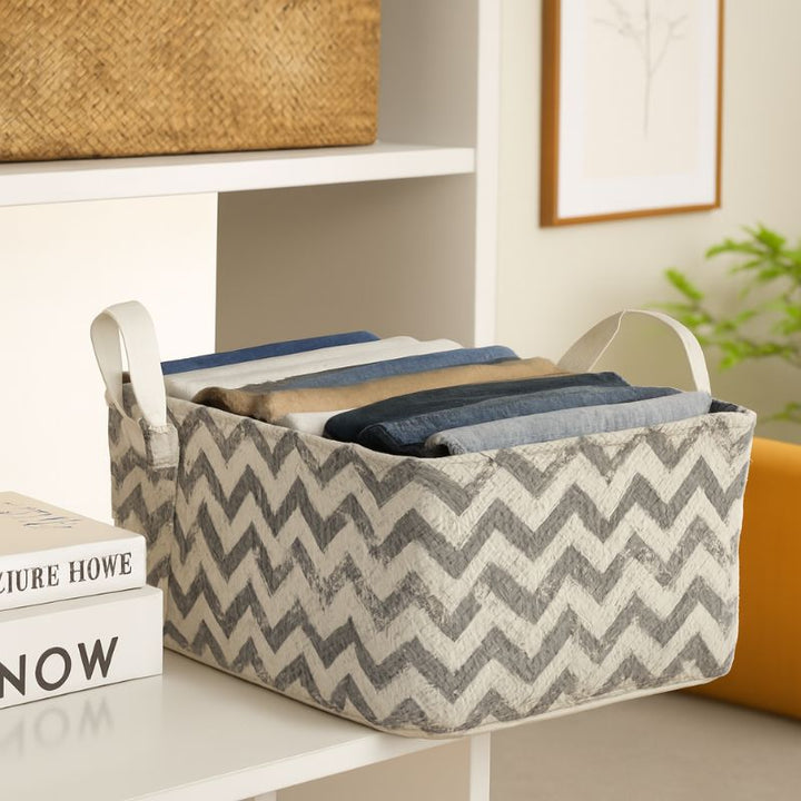 ⚡ Dale un toque moderno y funcional a tus espacios con esta canasta organizadora. Su diseño en zigzag combina fácilmente con cualquier decoración y te ayuda a mantener todo en orden.