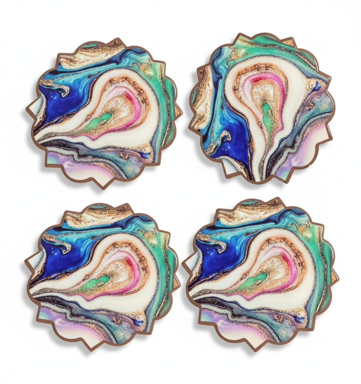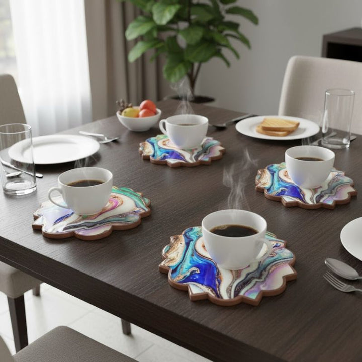 Agrega estilo, color y un toque artístico a tu mesa con este set de portavasos con efecto mármol abstracto ✨