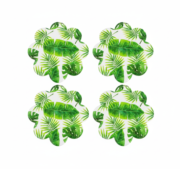 Dale un toque fresco y moderno a tu mesa con este hermoso set de portavasos con diseño tropical 🍃☕