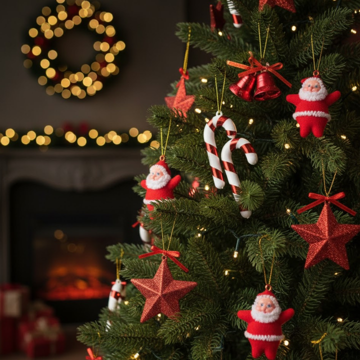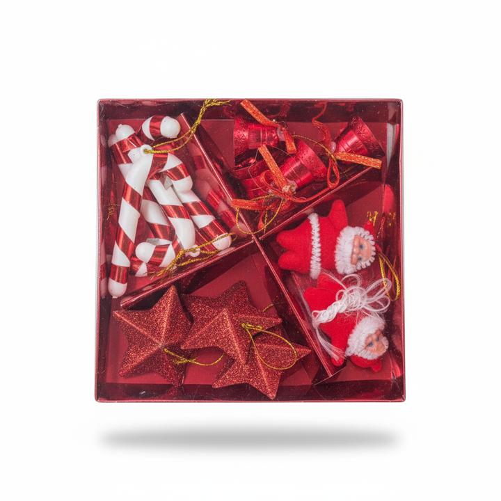 🎄✨ ¡Un toque mágico y lleno de color para tu árbol de Navidad! Este set decorativo en tonos rojos brillantes es perfecto para quienes aman los detalles que resaltan el espíritu navideño.