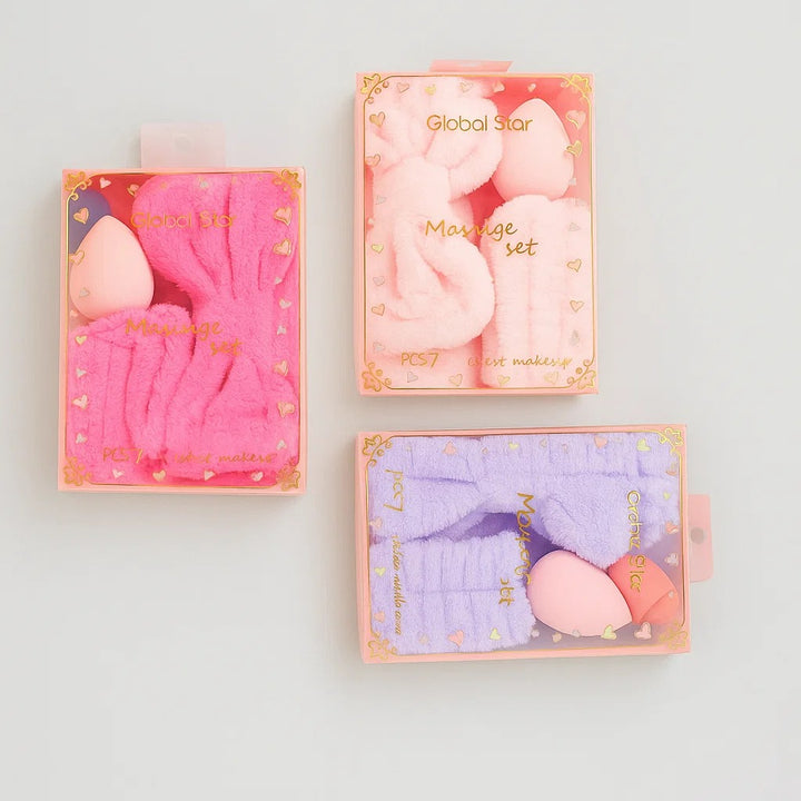 ✅ Incluye 6 piezas: 1 vincha tipo diadema (para sujetar el cabello), 2 muñequeras, 1 esponja de maquillaje tipo gota, 2 puffs planos para aplicación de polvos o bases.