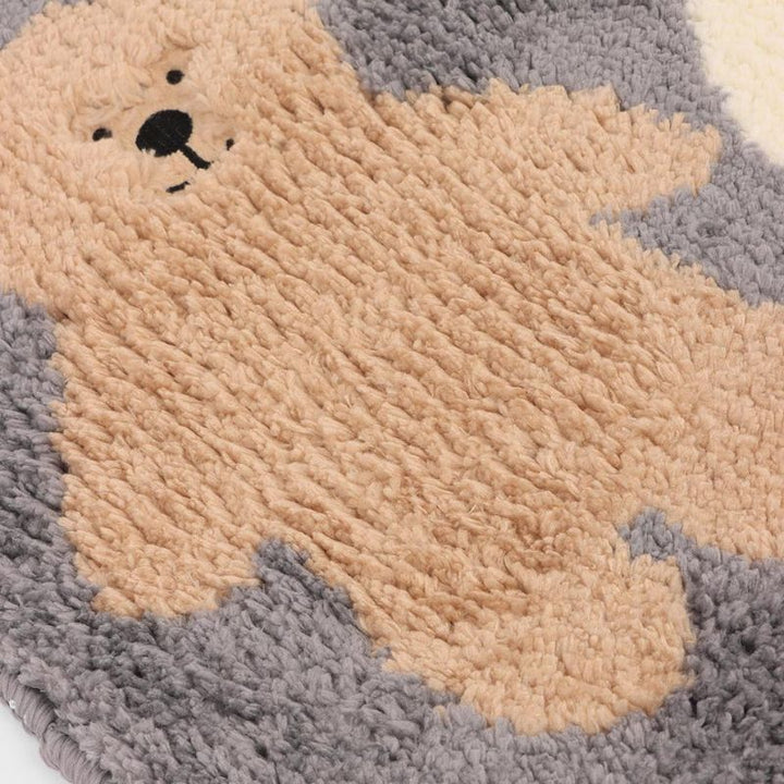 Añade calidez, textura y mucha ternura a tu hogar con este tapete de ositos.