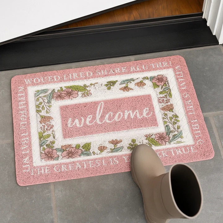 Recibe a tus invitados con calidez y estilo 🌸✨Este tapete rectangular en tono rosa, con flores decorativas, es perfecto para entradas que inspiran armonía y buen gusto.