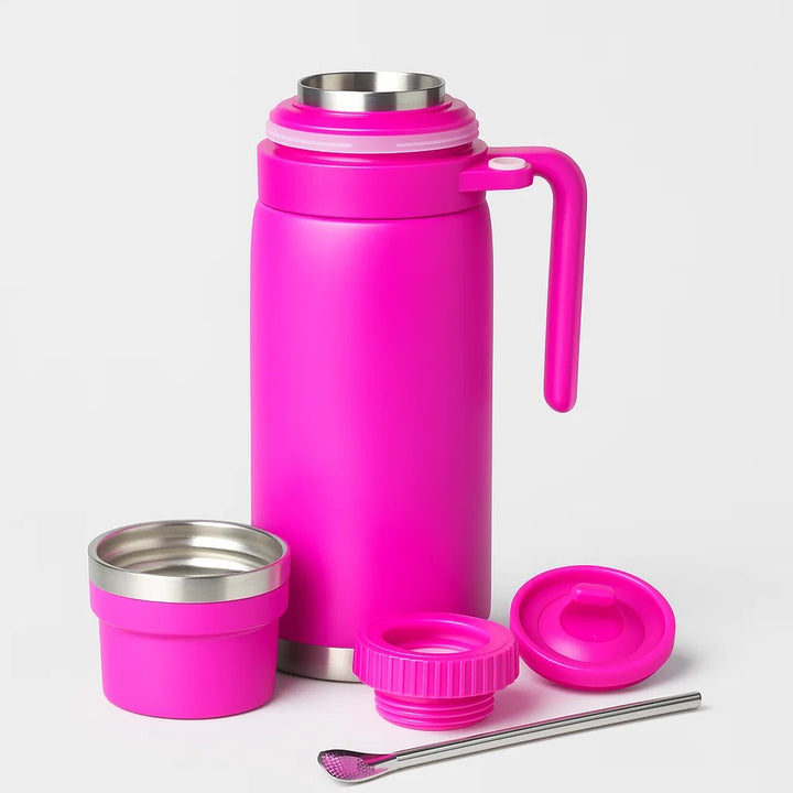Este termo de 1000 ml es perfecto para quienes buscan funcionalidad, estilo y capacidad en un solo producto. Ideal para el trabajo, viajes o momentos de relax, mantiene tus bebidas calientes o frías por horas.