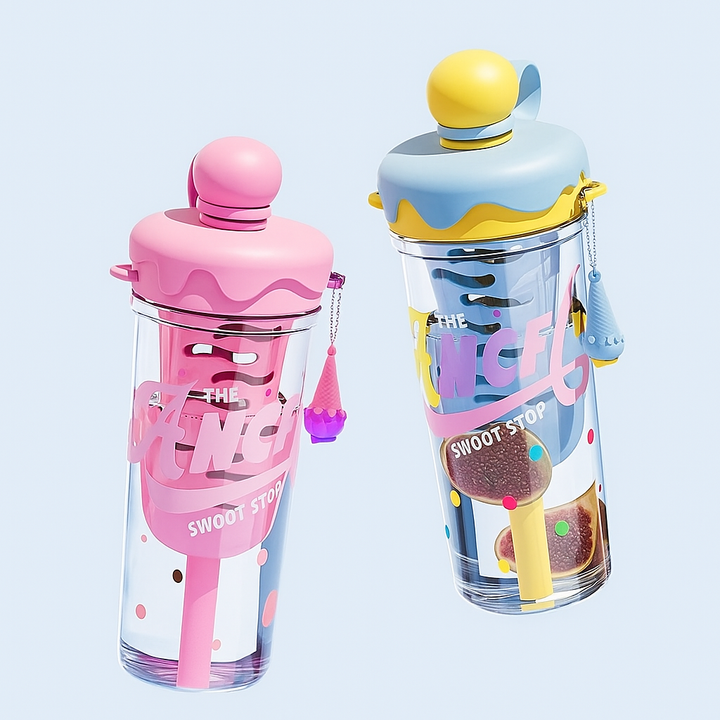 ¡Un termo divertido y funcional que se roba todas las miradas! 🍦✨ Con un diseño inspirado en helado, perfecto para darle estilo y alegría a tus bebidas en cualquier momento del día. Fabricado en plástico, incluye pitillo integrado.