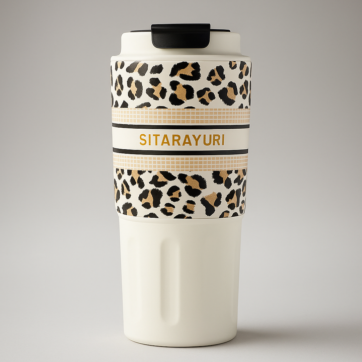 ✨ ¡Lleva tu bebida favorita con todo el estilo! Este termo combina un diseño moderno con detalles animal print que lo hacen único y llamativo. Perfecto para quienes buscan practicidad sin perder el toque chic en su día a día.