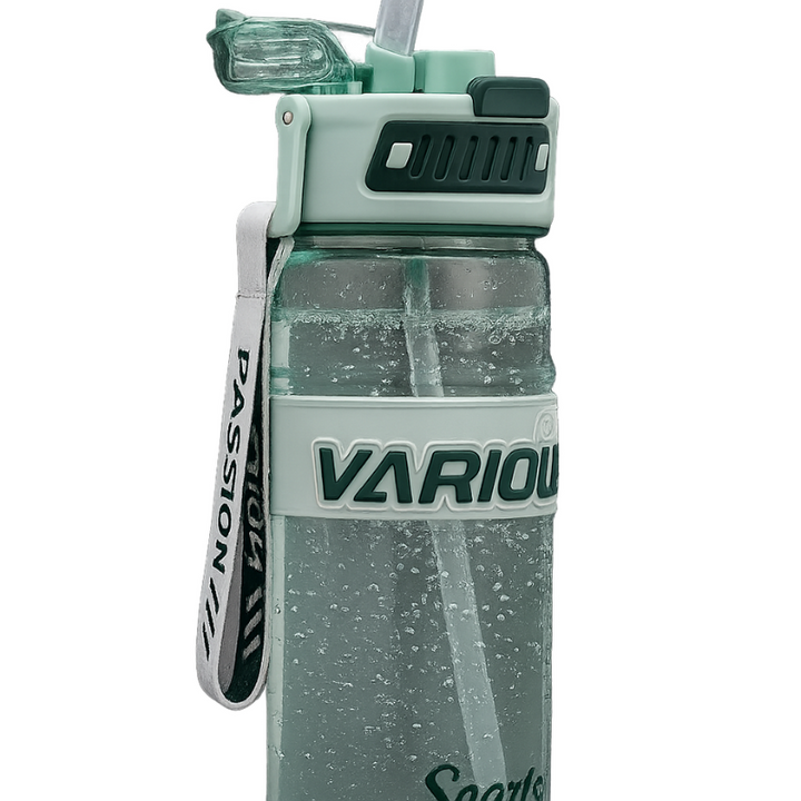 Este termo plástico incluye pitillo integrado, ideal para acompañarte en el gimnasio, la oficina, la casa o tus actividades al aire libre.