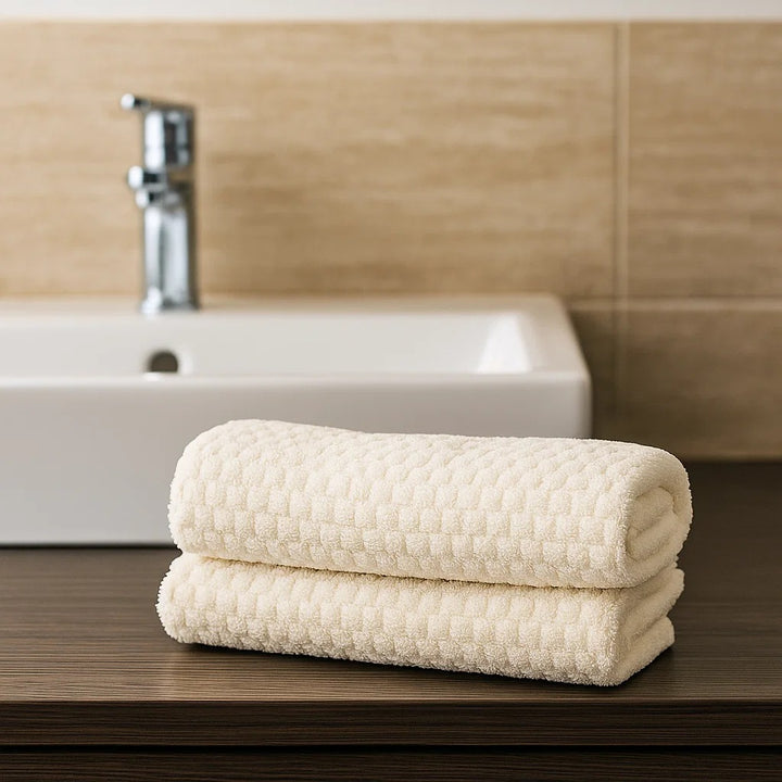 Nuestra toalla de 35 x 75 cm es perfecta para uso diario, ligera y con una textura especial que brinda máxima absorción mientras cuida tu piel. Su diseño elegante la convierte en un accesorio ideal para tu baño. 🌸